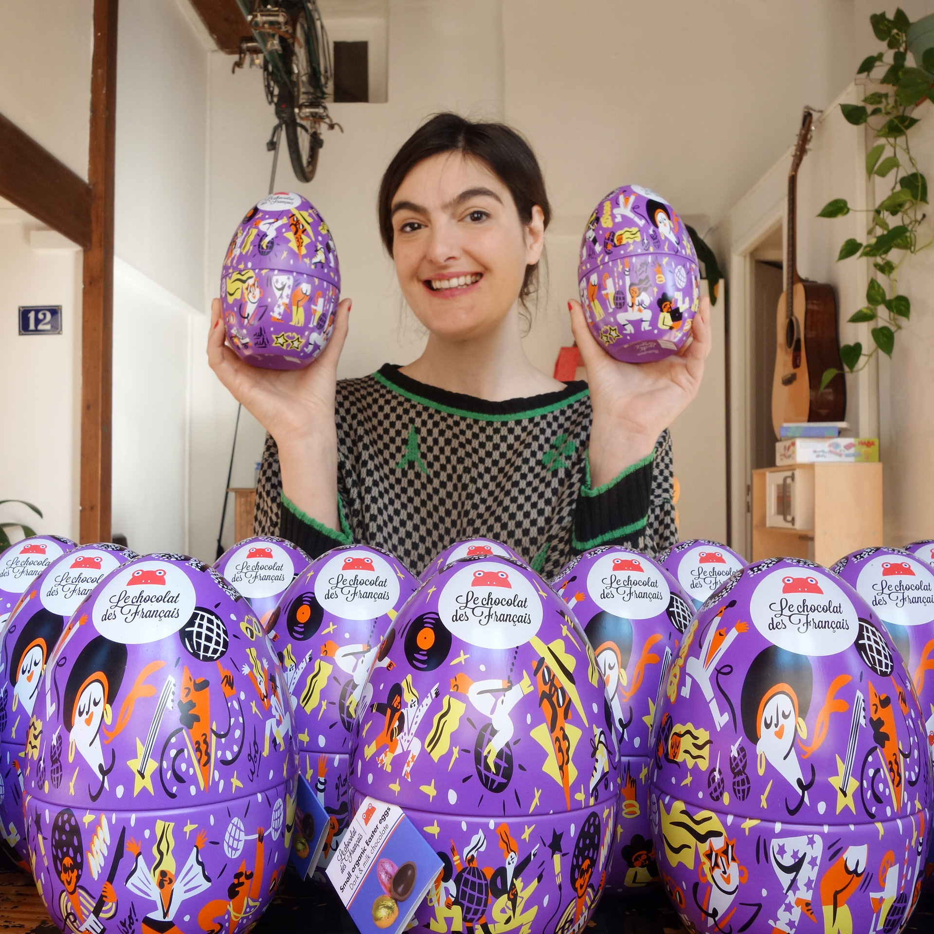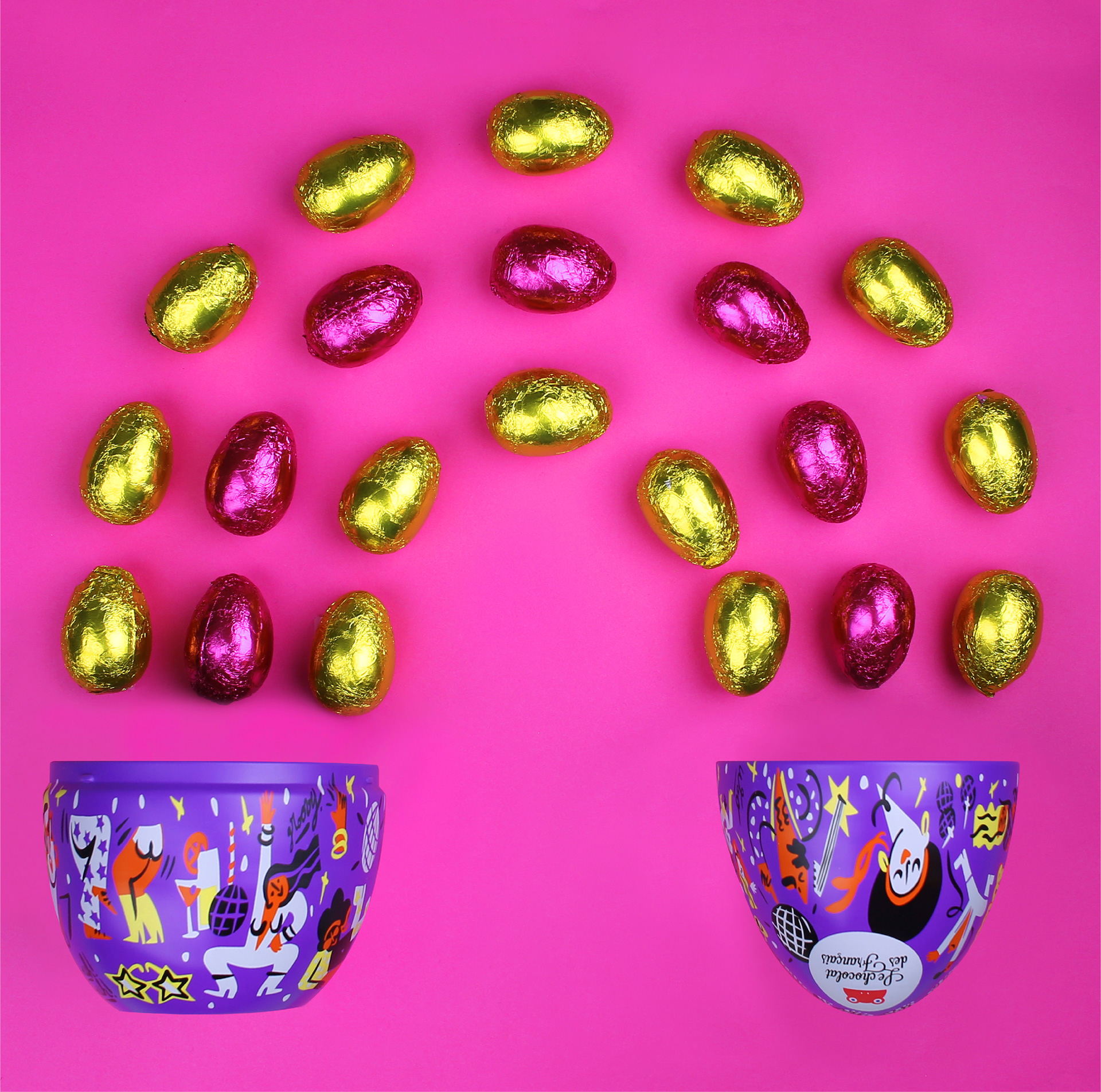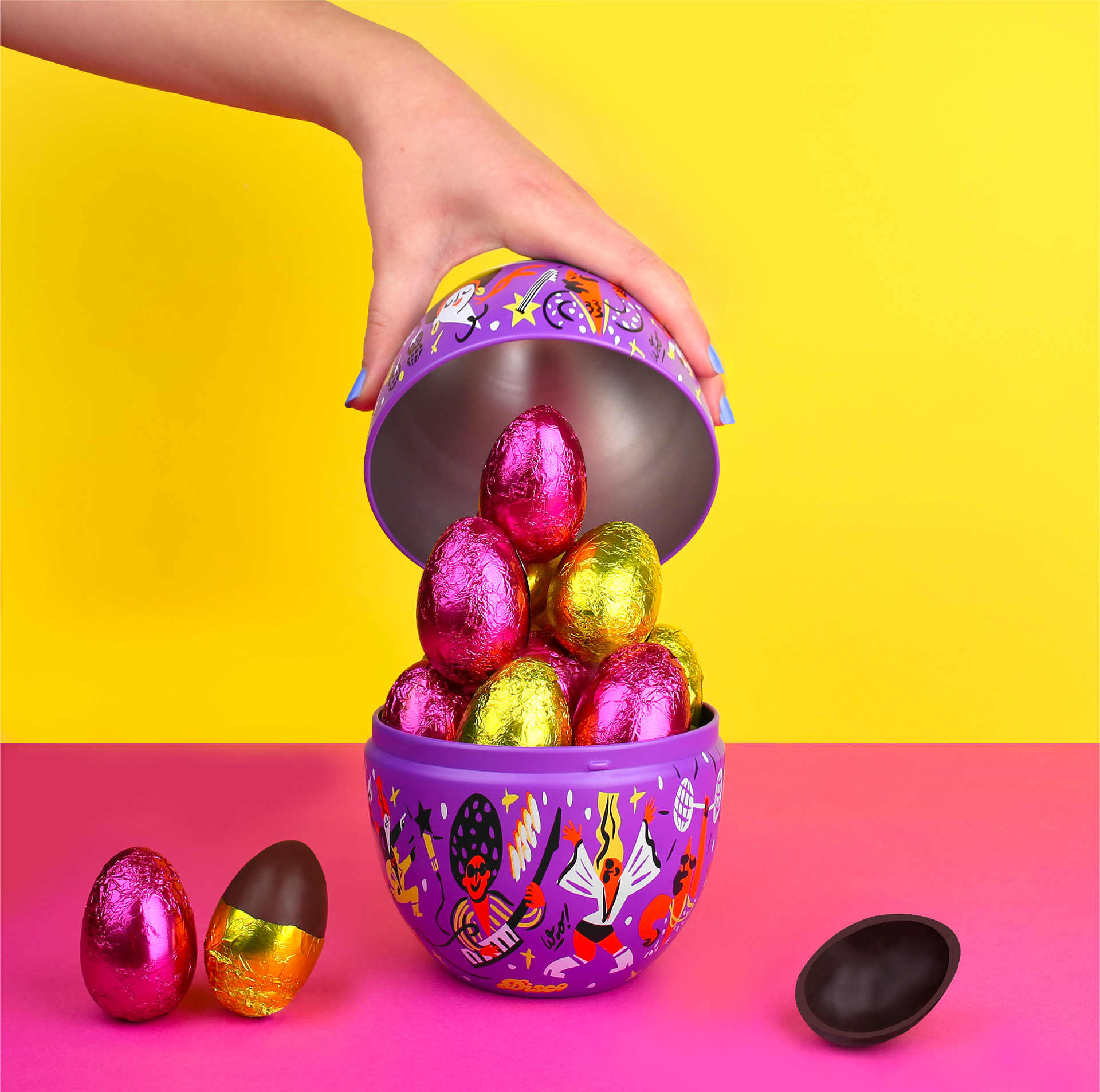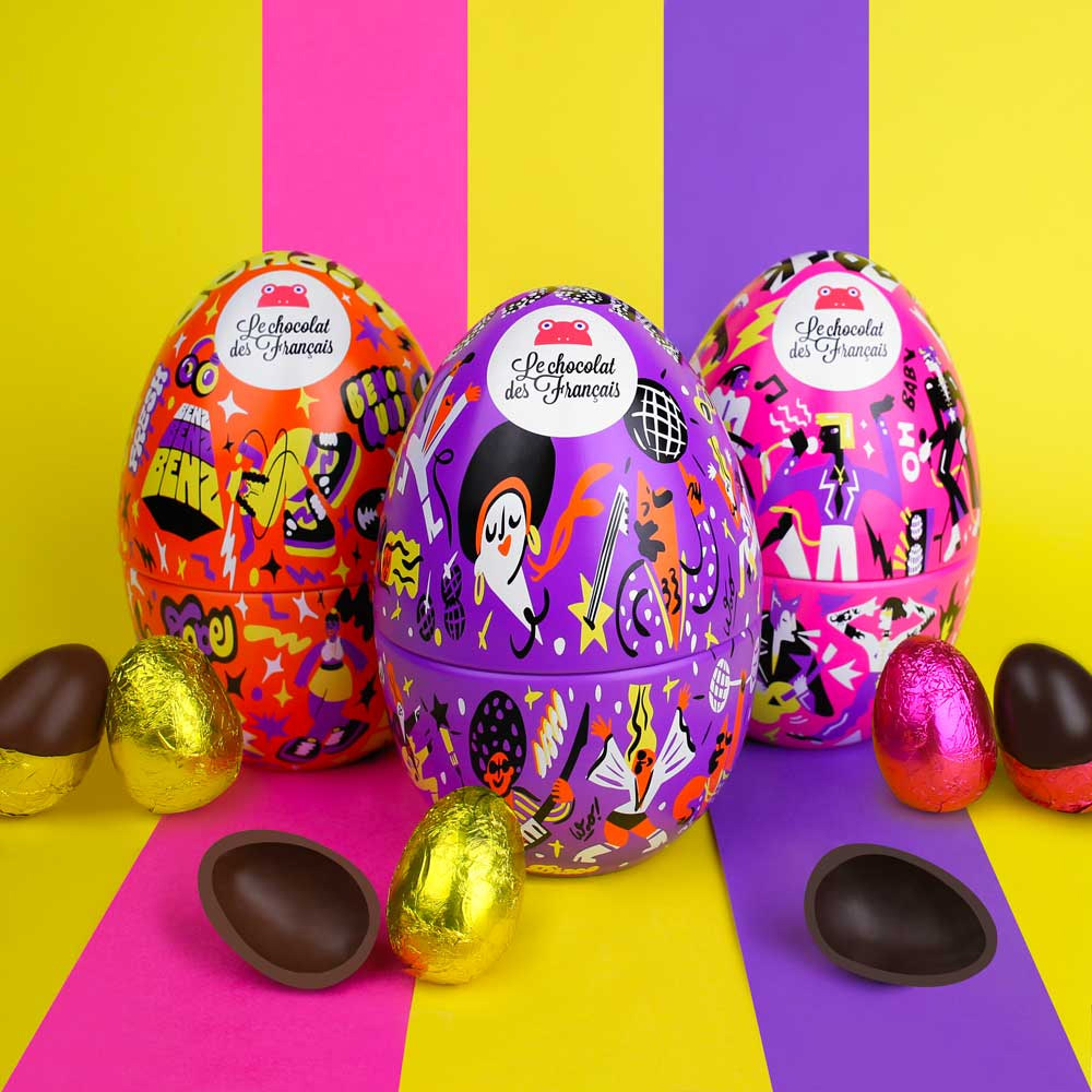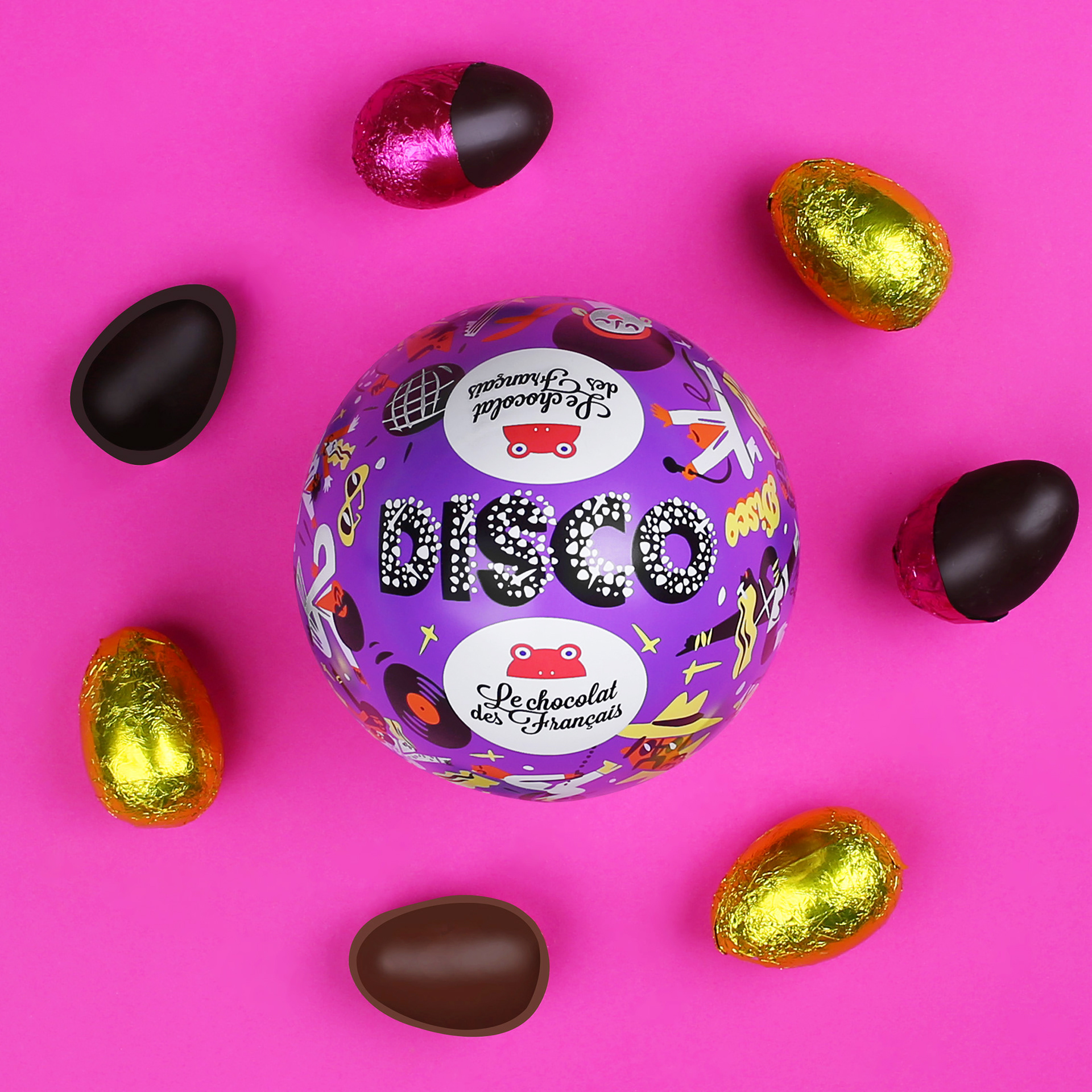 lllustrations for an easter chocolate egg on the theme : Disco Music