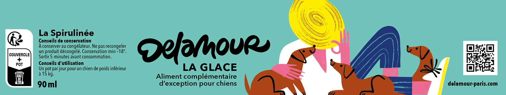 Illustrations for Delamour, healthy food for dogs. Packaging, retail and social network communication. This work was made in collaboration with Laurent Muller, art director.