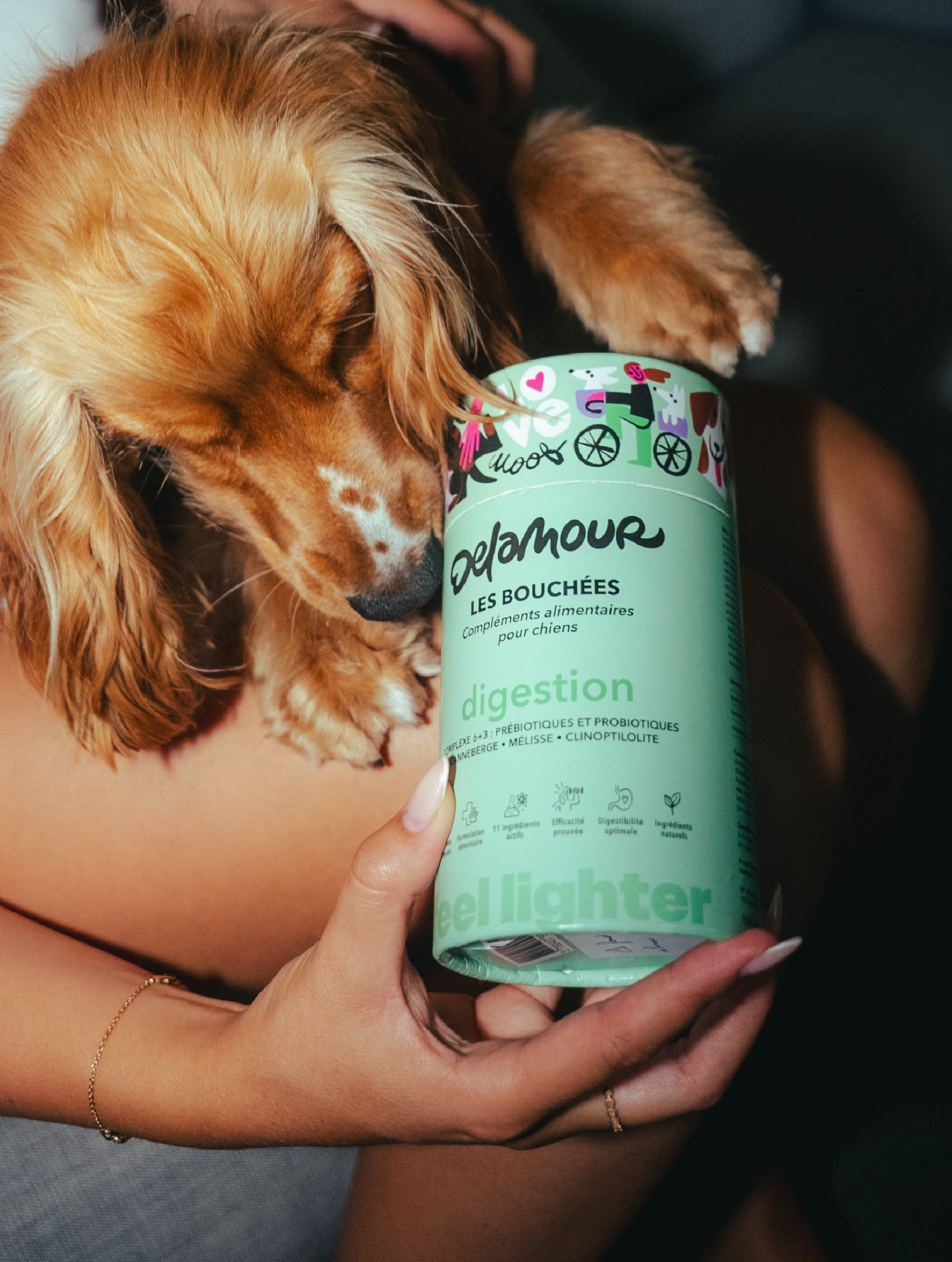 Illustrations created for Bouchées Delamour, natural dog supplements.