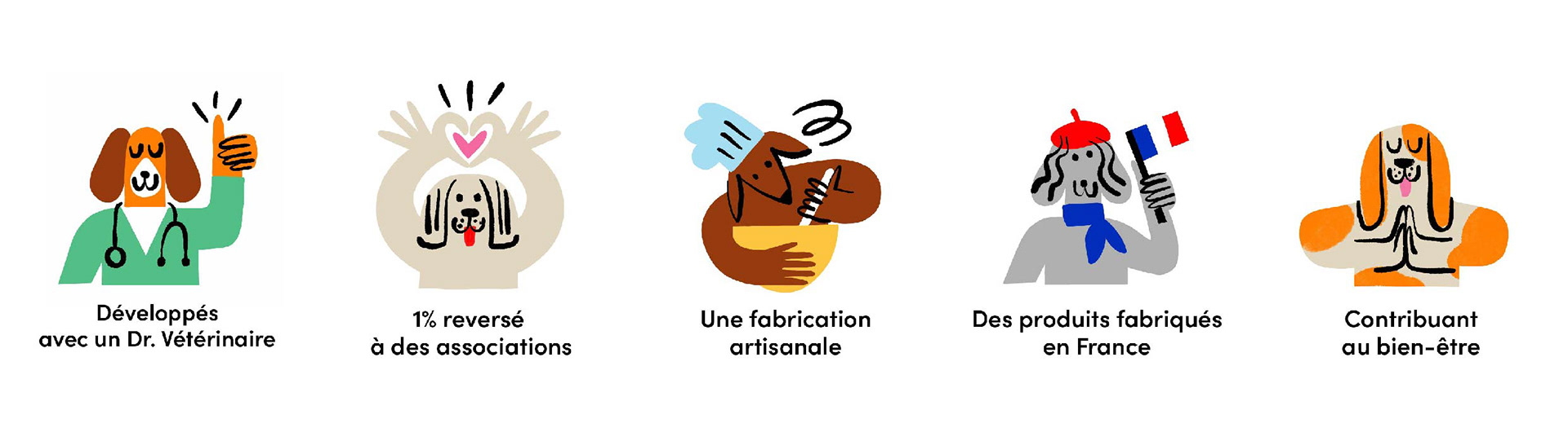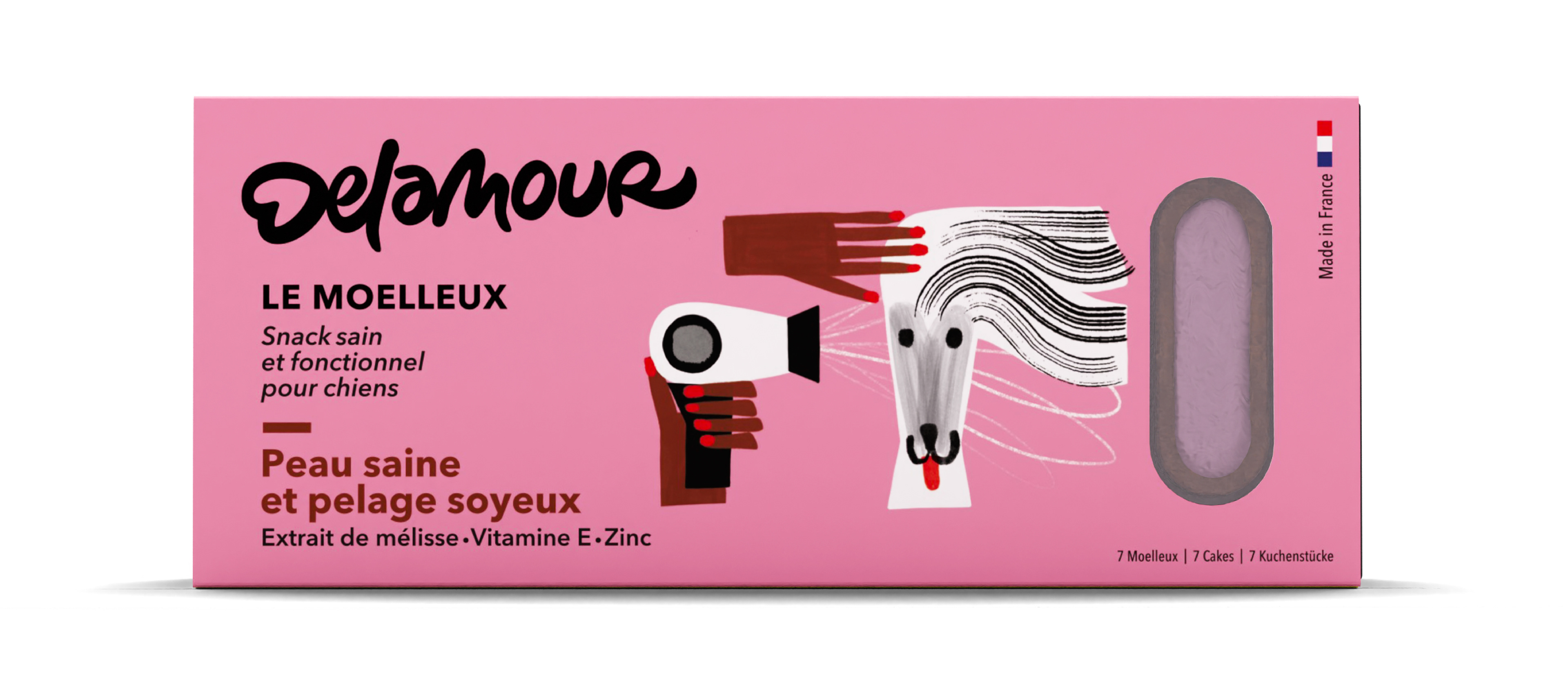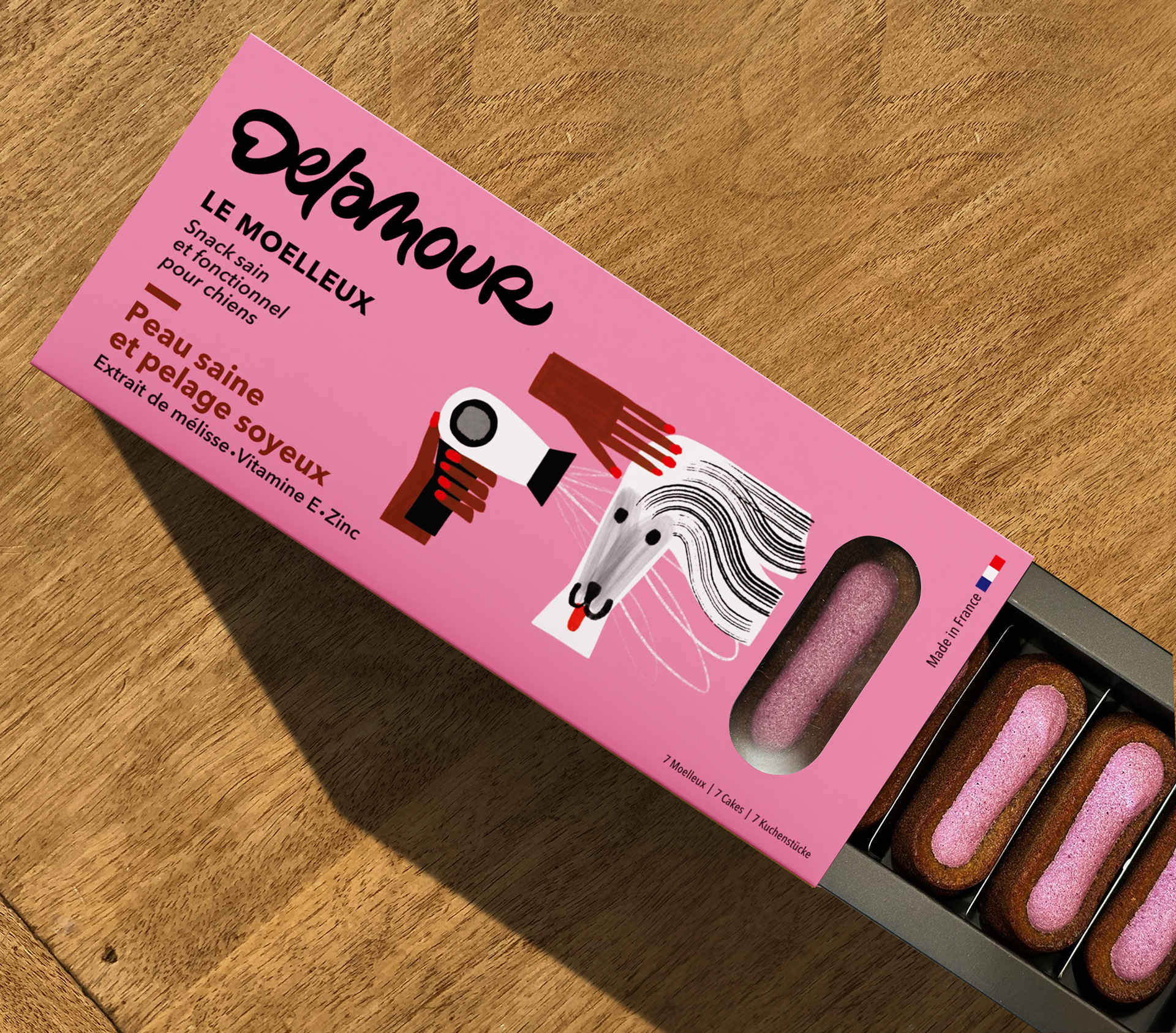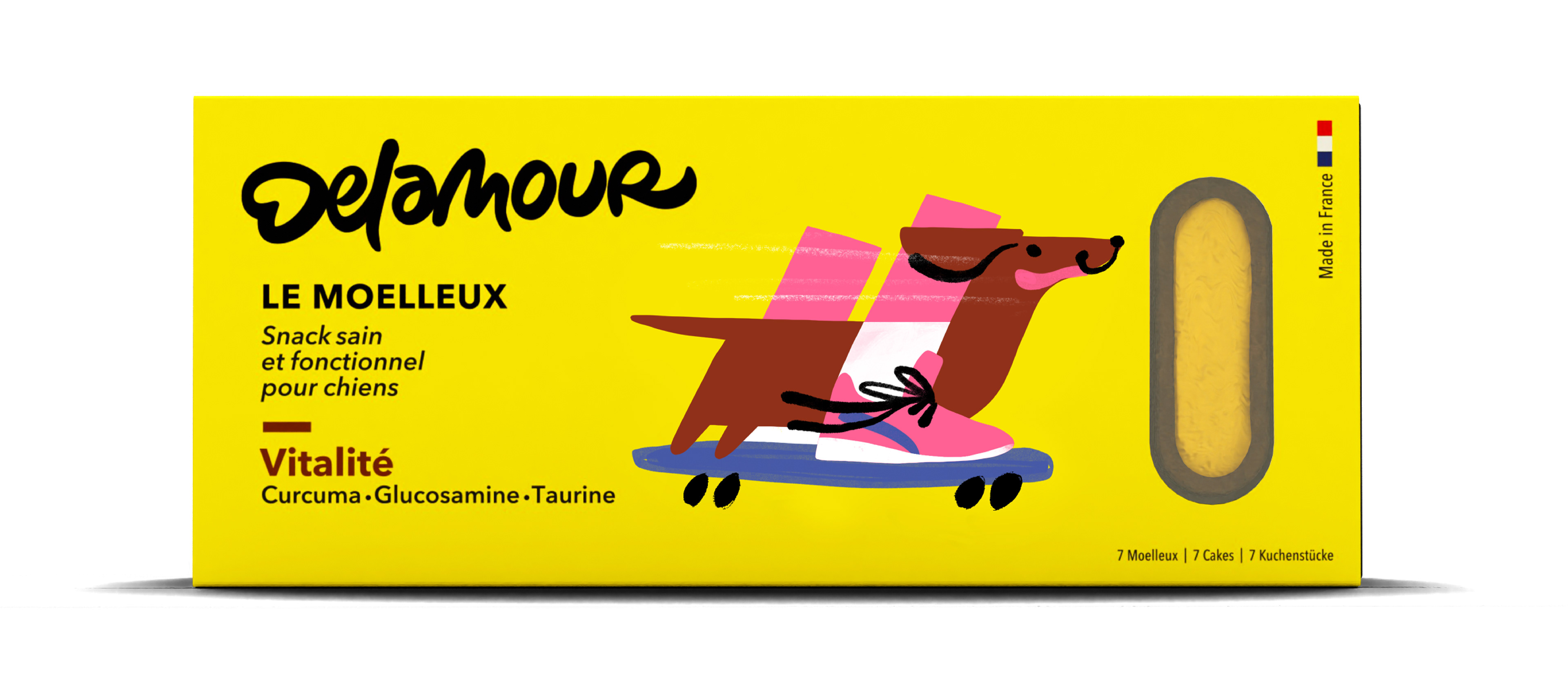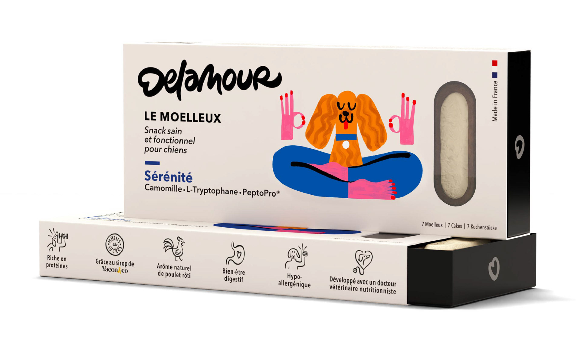 Illustrations for Delamour, healthy food for dogs. Packaging, retail and social network communication. This work was made in collaboration with Laurent Muller, art director.