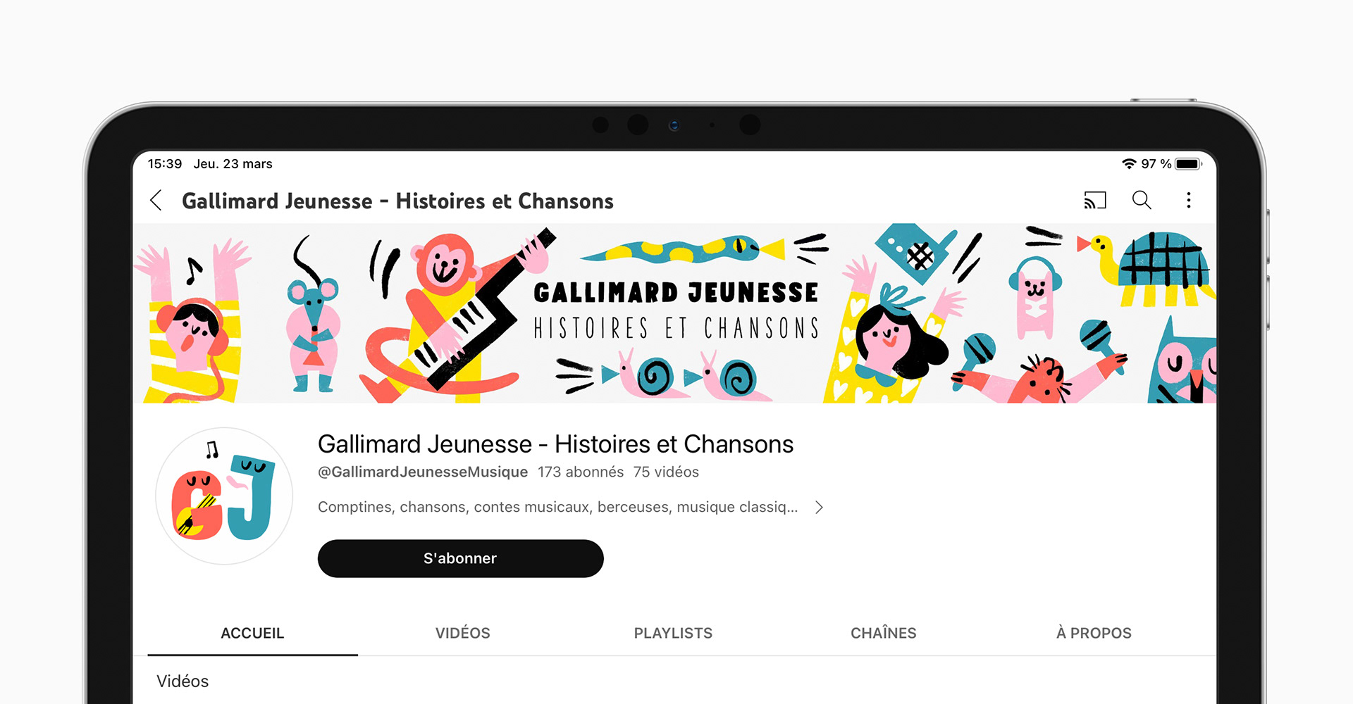 Web banner and animated gif for Gallimard Jeunesse Histoires et Chansons / Youtube, Spotify, Deezer